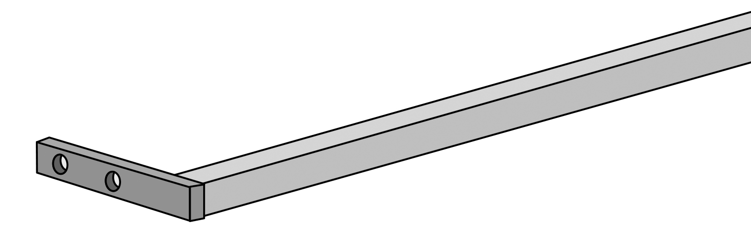 Pevná hliníková eloxovaná vzpěra s PVC fixačními příchytkami pro snadnou montáž.