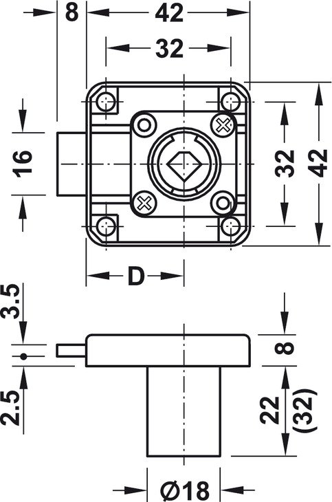 - zámek Symo zásuvkový středový 18/22 nikl - komplet