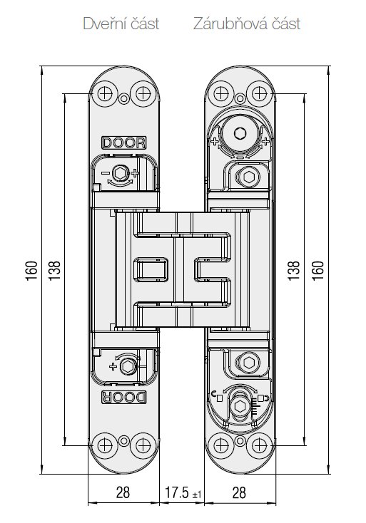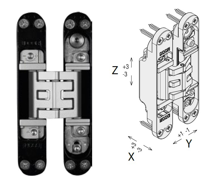 - závěs pro těžké bezfalcové dveře s 3D seřízením . výškově a předozadně +/- 3mm, stranově +/- 1mm