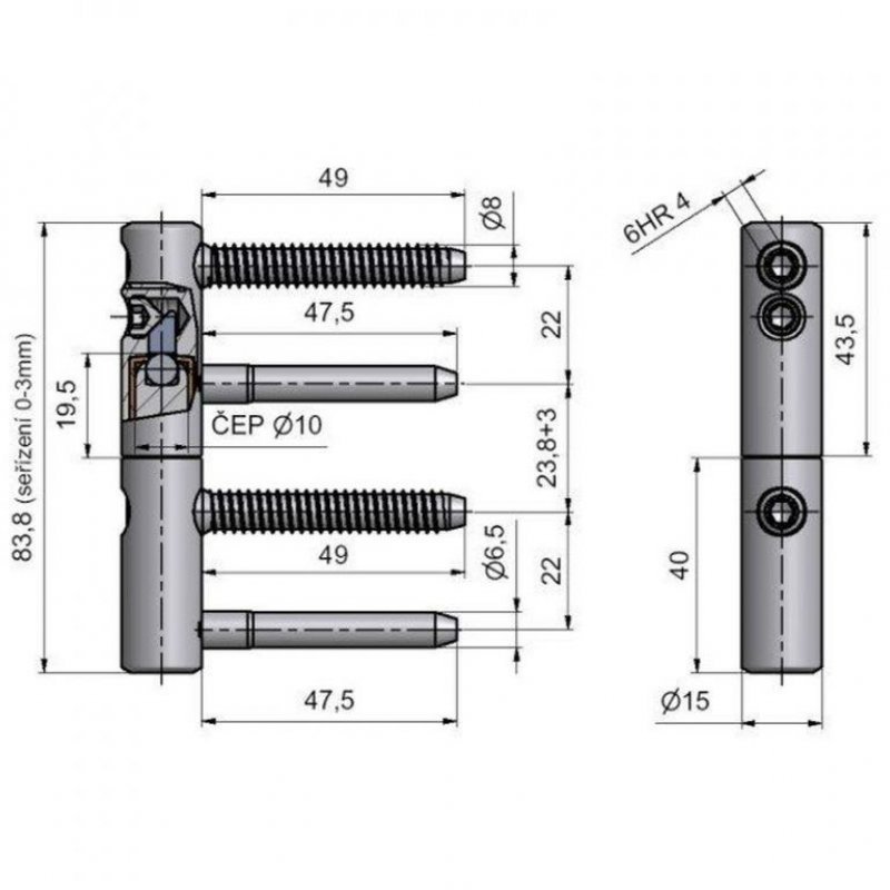 - závěs dveřní stavitelný ve 3 směrech