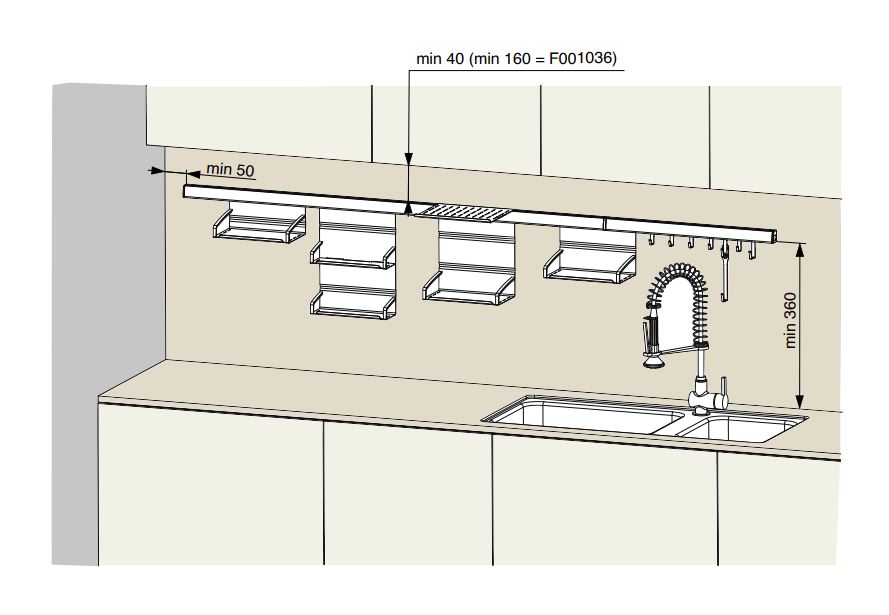 Hliníkový profil na kuchyňskou stěnu slouží k zavěšení polic a háčků.