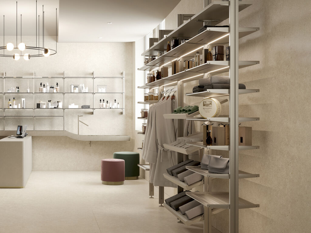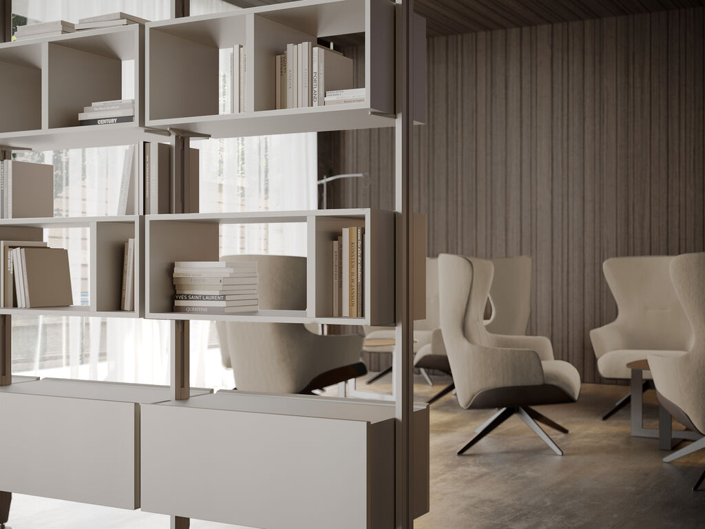 Modulární regálový policový systém ZERO je designové řešení úložných prostorů v šatně, kanceláři nebo obývacím pokoji.