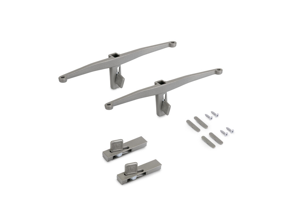 Držáky jsou vyrobeny z kvalitního materiálu zamak s povrchovou úpravou kamenné šedé (RAL 7048), tyto podpěry kombinují pevnost, funkčnost a estetiku.