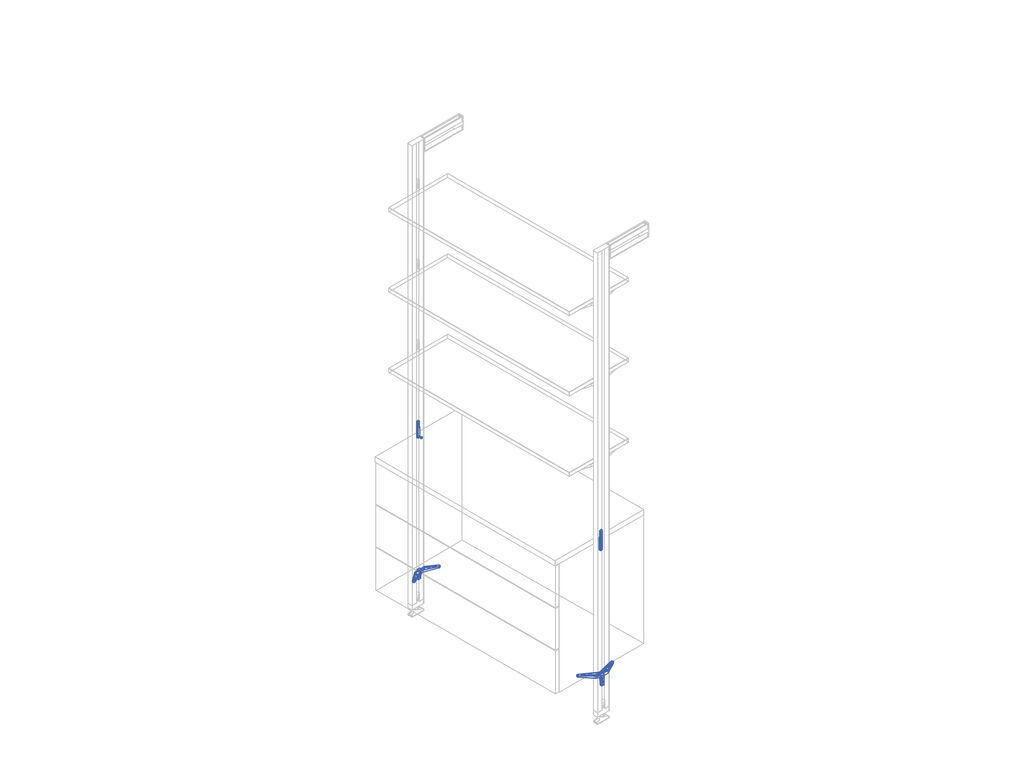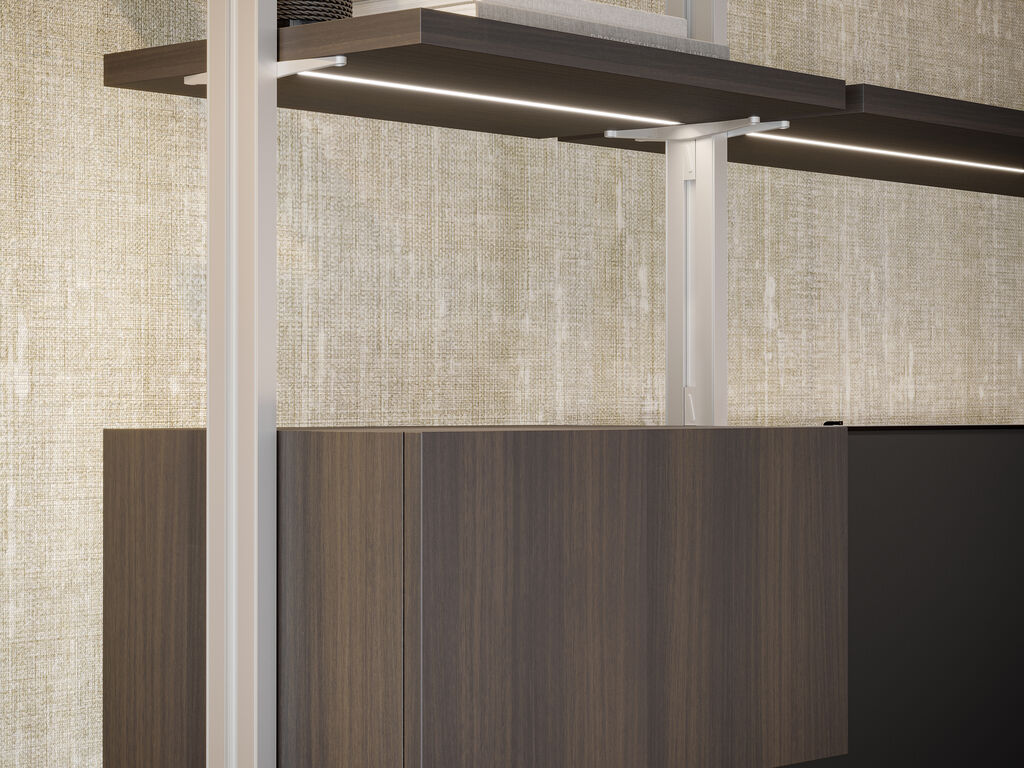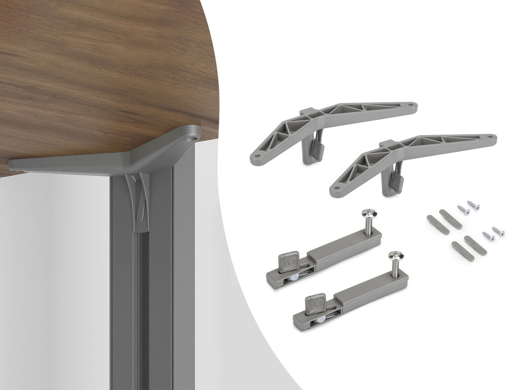 Kompletní sada držáků pro uchycení modulu /skříňky/ včetně krytek pro konstrukční profil ZERO. Využití do moderních interiérů, šaten a koupelen