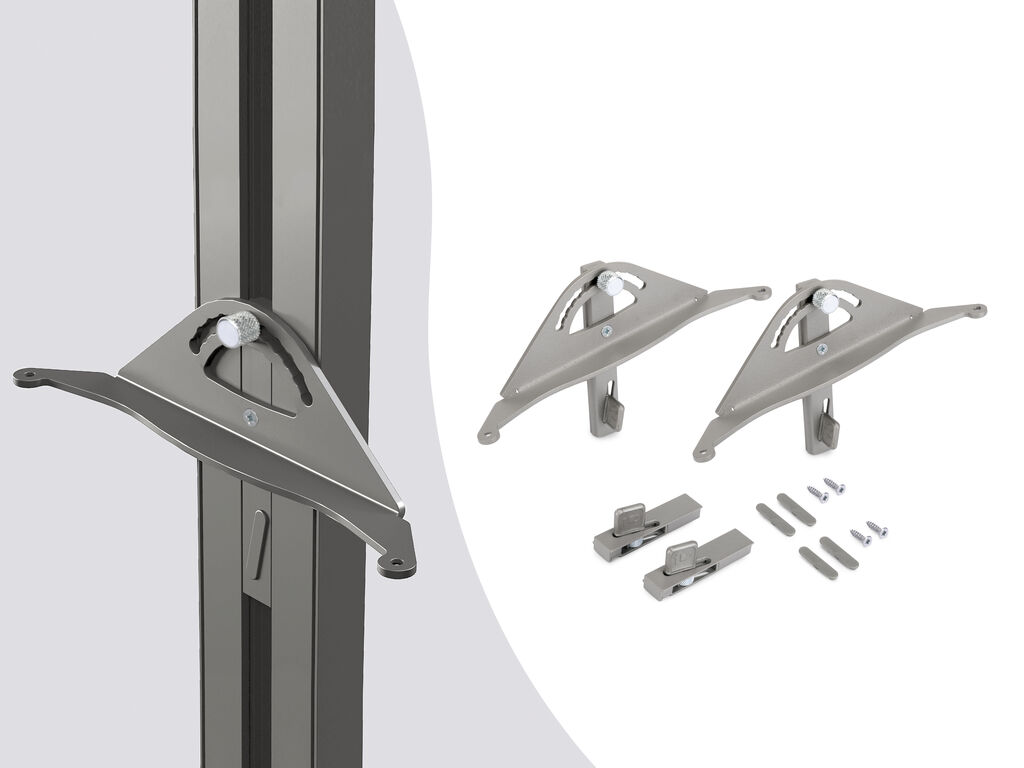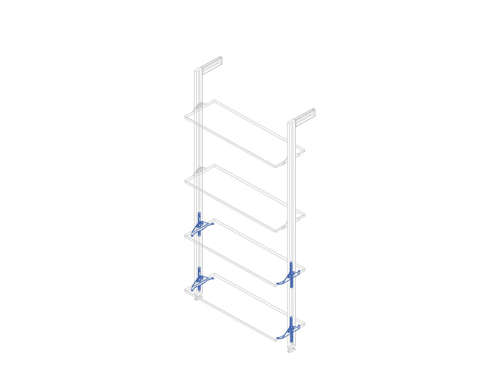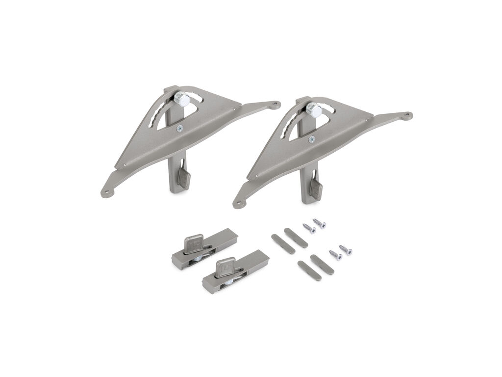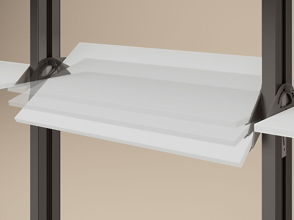 Sada polohovacích držáků pro dřevěnou polici modulárního regálového systému ZERO.