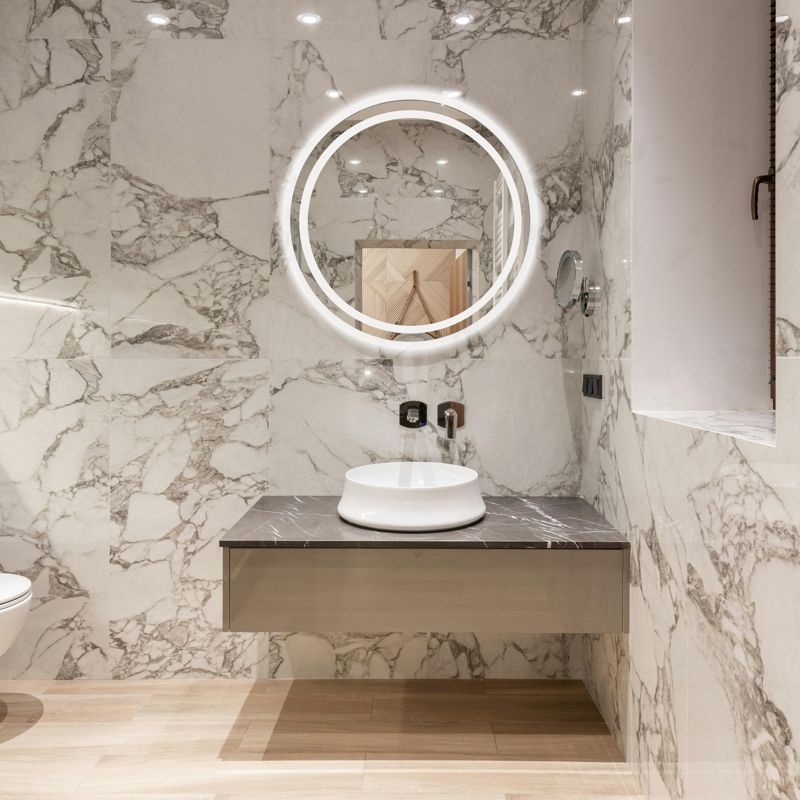 - designové kulaté zrcadlo se zadním LED osvětlením do moderního interiéru
